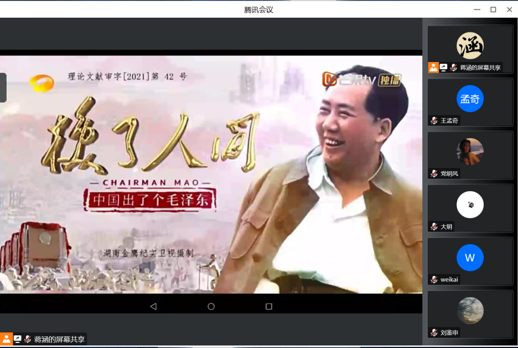 为学习二十大会议精神,传承红色基因,赓续红色血脉,纪念毛主席129周年诞辰,2022年11月25日下午6时,2022级知识产权法律硕士党支部通过腾讯会议开展一课一片一实践集中观影主题党日活动,本次党日活动由支部书记蒋涵主持,2022级知识产权法律硕士党支部全体成员参加。