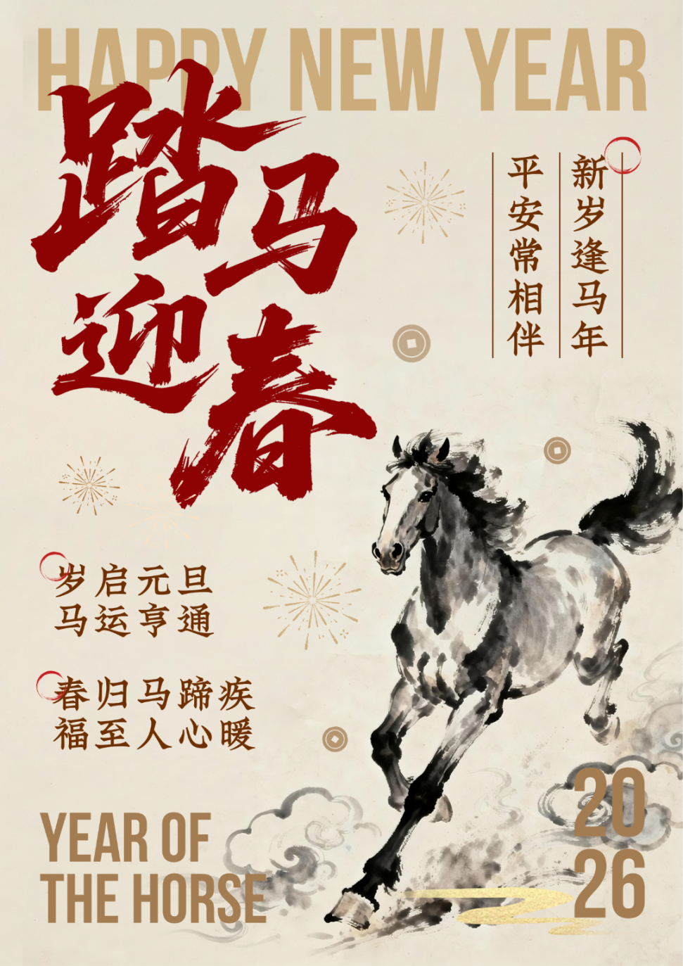 即将来临的二零二六是丙午马年。《后汉书》有云:“马者,甲兵之本,国之大用”。马是六畜之首,是古代生产生活、军事征战中的重要工具。我国是世界上养马历史最悠久也是马文化最发达的国家之一。“马”早已超越其功能用途,被赋予了丰富的文化内涵。在传统文化中,马总是寓意着奔腾不息的精神与昂扬向上的力量,是奋进、刚健、忠诚、担当精神的象征。