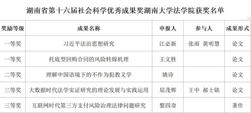 近日,中共湖南省委、湖南省人民政府公布了湖南省第十六届社会科学优秀成果奖获奖名单。湖南大学共43项成果获奖,其中澳门新葡京网址-澳门新葡京线上