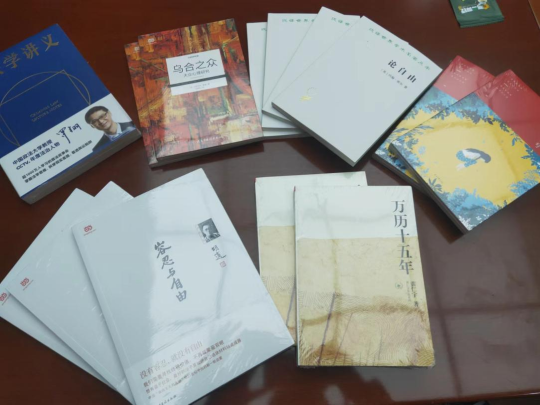 读书会结束时,蒋老师为每位参与者分发了《乌合之众》《容忍与自由》《刑法学讲义》《万历十五年》等书籍作为奖励,并鼓励大家开卷有益,勤加阅读。书卷多情似故人,真理越辩越明。同学们纷纷表示受益良多,并期待下一次读书会的到来。