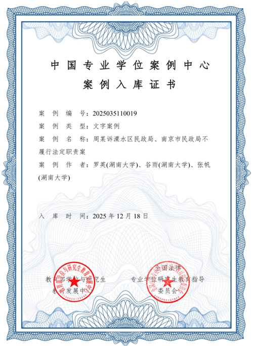 近日,教育部学位与研究生教育发展中心公布了中国专业学位案例中心2025年度入库案例名单,澳门新葡京网址 罗英教授团队撰写的案例入选第五批法律硕士专业学位文字教学案例库。