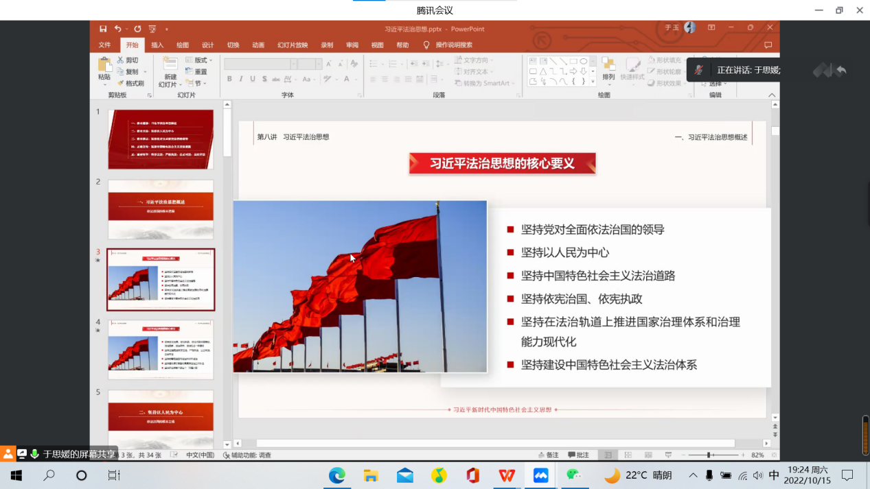 本次主题党日活动主要对党的十八大以来主要的精神进行了线上回顾与学习。本次会议以支部书记郑琼英老师发表讲话为开始,接下来本支部共同观看大型电视专题片《领航》第七集——良法善治、并集体学习了《习近平法治思想学习纲要》。最后,由各位党员同志对近期学习心得以及个人愿景进行了分享。
