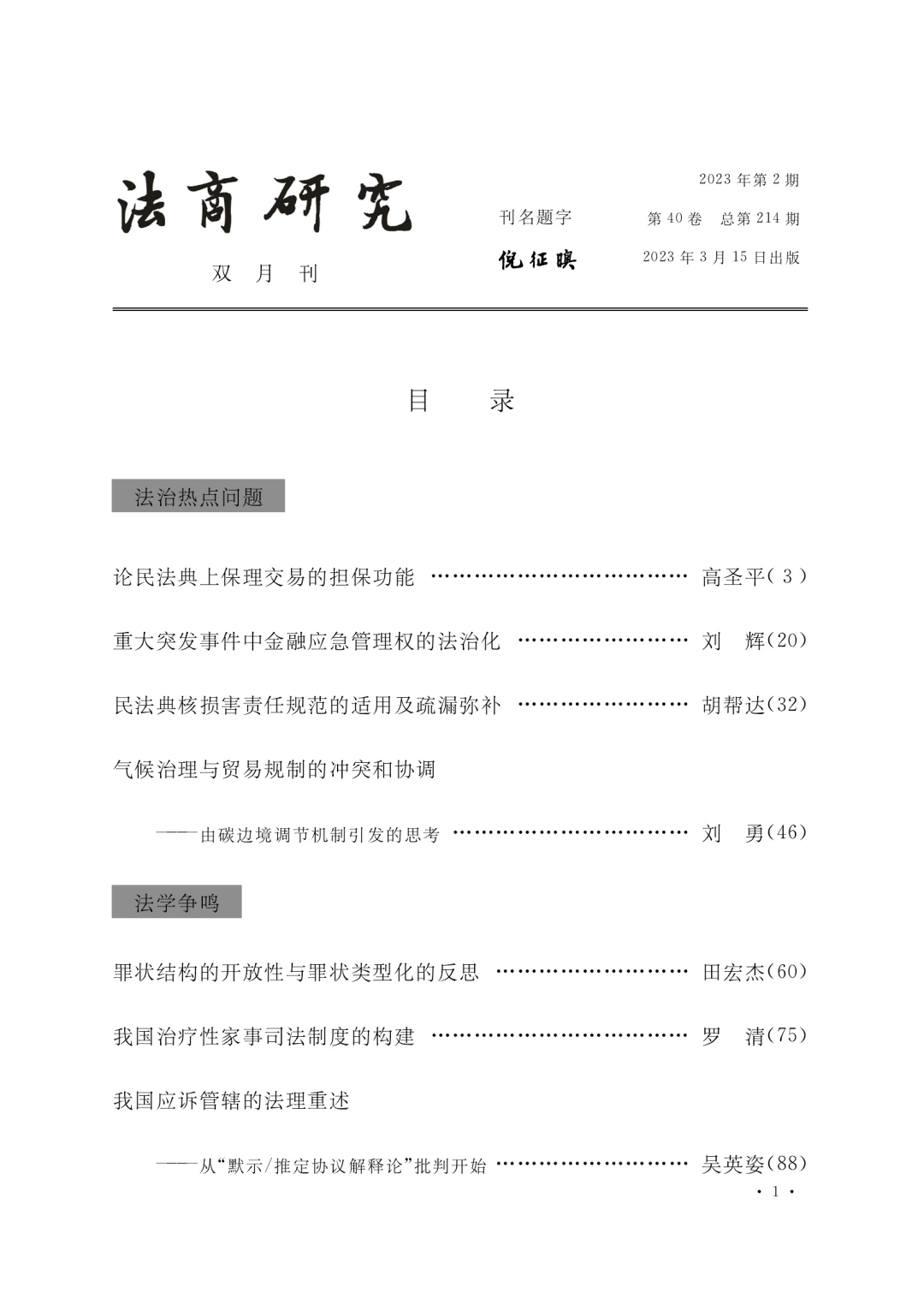 刘辉:重大突发事件中金融应急管理权的法治化︱CLCSI《法商研究》2023(2)