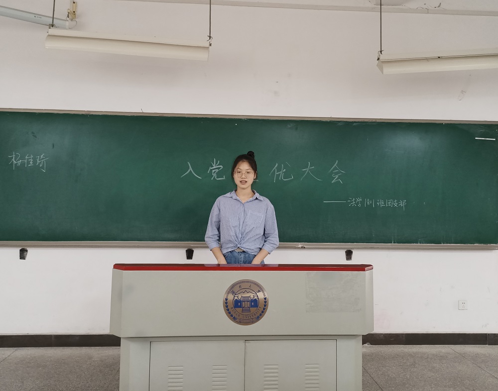 在同学们明确评优条件及程序规则后,满足推优条件的同学自主上台发表演讲。杨佳琦、向情情、马婷、钟兰芳、王梦、张雨谦6位同学分别上台演讲。同学们主要阐述自己对中国共产党的认识和入党动机,介绍自己在学习工作、生活作风、思想纪律等方面的表现,对自己做出全面客观的总结,并向党组织做出承诺,坚定表示在今后的学习、工作和生活中他们会严格要求自己,起到良好的模范带头作用。演讲同学的真挚和热忱深深感染着在座的每一位同学,也鼓舞了同学们对中国共产党的忠诚与热爱之情。